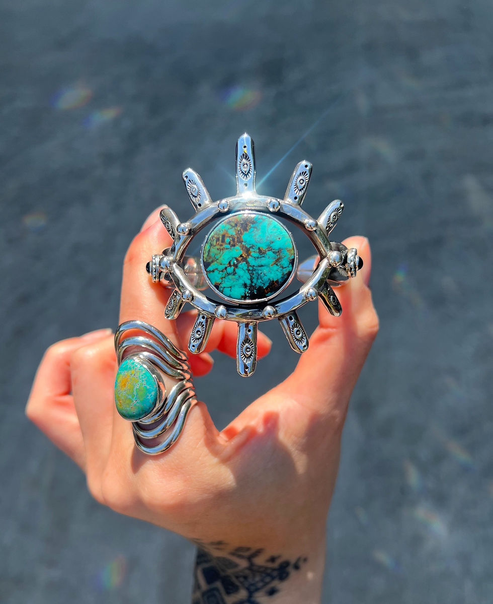Rainbow Moonstone and Tyrone Turquoise Arm Cuff